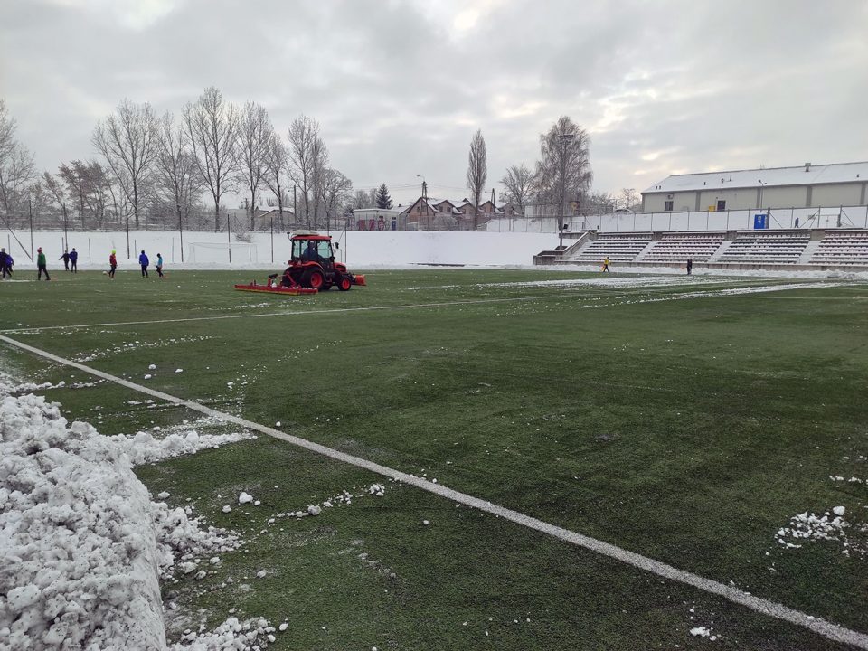 Sypnęło śniegiem w całej Polsce i białego puchu jest bardzo dużo również w Tomaszowie Mazowieckim. To bardzo pracowity czas dla konserwatorów, którzy sprawują opiekę na obiekcie Lechii. W czwartek 14 stycznia mieli oni pełne ręce roboty, ale dzięki nim zawodnicy z rocznika 2009 mogli rozegrać mecz sparingowy.