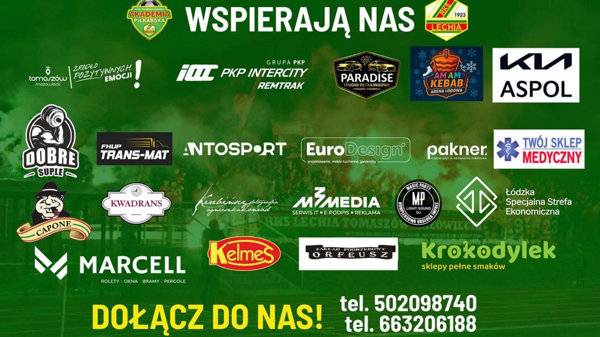 W mijającym półroczu wspierało nas wielu Sponsorów i Partnerów: firm, które zdecydowały się być częścią zielono-czerwonej rodziny i razem z nami budować przyszłość tomaszowskiej piłki! To dzięki Wam możemy realizować ambitne cele, rozwijać naszą Akademię, szkolić młodzież i stale podnosić poziom pierwszej drużyny.